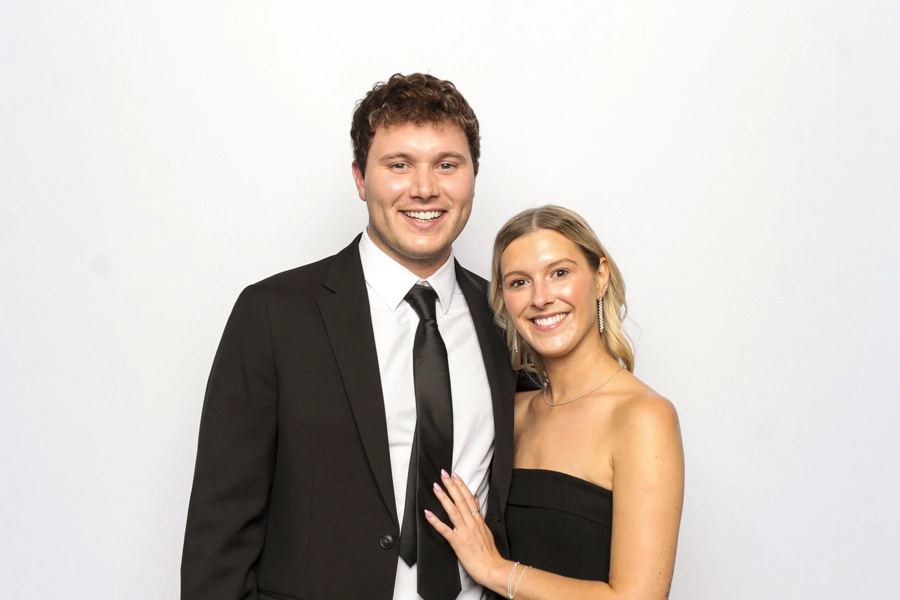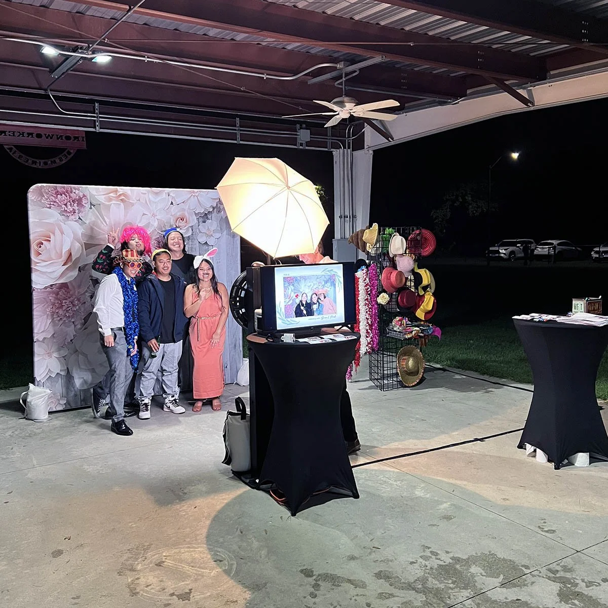 We ditch the “booth” for a wide-open, minimalist set with professional-grade studio strobes and a high-end fabric backdrop. Perfect for the couple who wants museum-quality portraits of their guests. It accommodates large groups (10+) easily and feels like a dedicated photoshoot rather than a party gimmick.